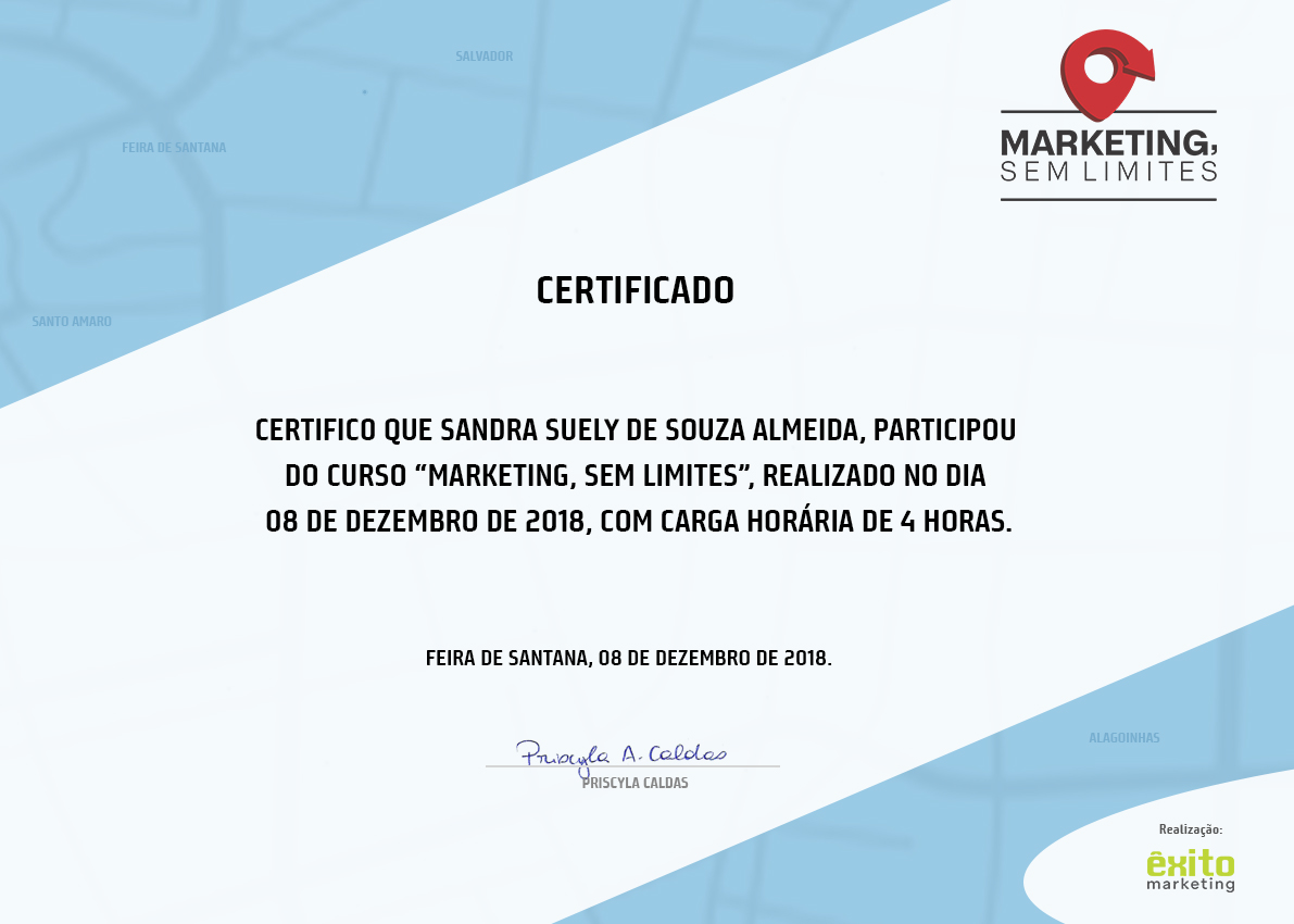 Priscyla Caldas, é mestre em Comunicação nas Organizações pela Universidade Lusófona (Portugal), Pós-Graduada no MBA Executivo em Gestão de Negócios pela Faculdade Ruy Barbosa e graduada em Marketing pelo Centro Universitário da Bahia. Possui grande experiência acadêmica como também profissional com mais de 15 anos envolvida com Marketing, Comunicação e Gestão de Negócios. Atuou como gerente de Marketing e Comercial, coordenou equipes e grandes contratos. É palestrante, já atuou como professora universitária de disciplinas voltadas para as áreas de Marketing e Comunicação e escreve artigos sobre estes temas, reunidos em seu Blog. Atualmente à frente da ÊXITO Marketing, acredita que o grande diferencial das empresas que querem ter destaque em um mercado tão competitivo, é investir em estratégias de Marketing.