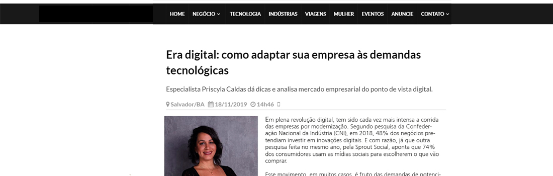 Em entrevista para canais de comunicação, como: Negócios em Foco, Bahia Social, Diga Salvador, Juci Ribeiro, Criativa Online, Aldeia Nago, falei como adaptar as empresas às demandas tecnológicas neste era digital.