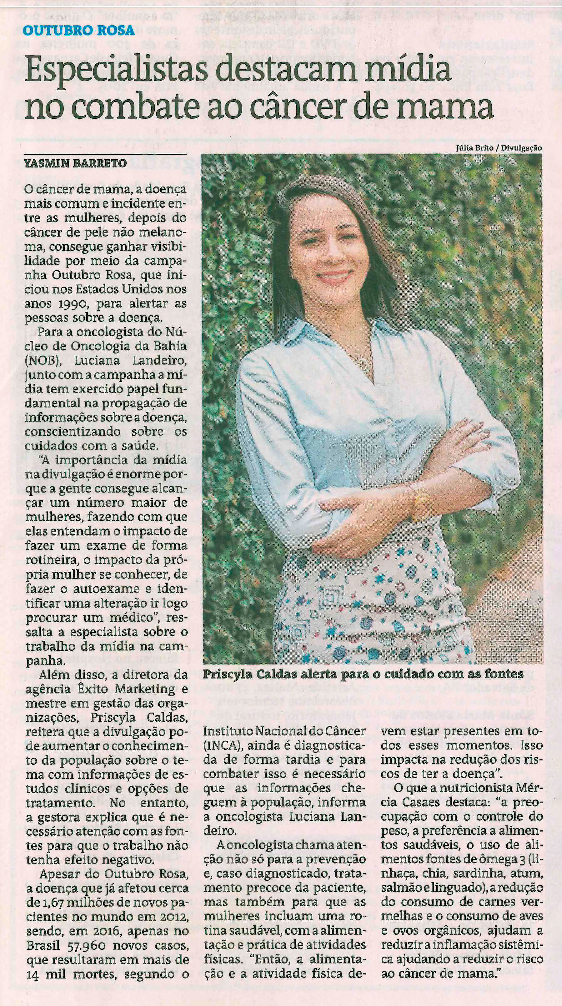Em entrevista ao Jornal A Tarde, comentei sobre como as mídias sociais podem facilitar o acesso as informações de campanhas como o Outubro Rosa. Convidei a nutricionista Mércia Casaes para contribuir com a reportagem.
